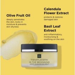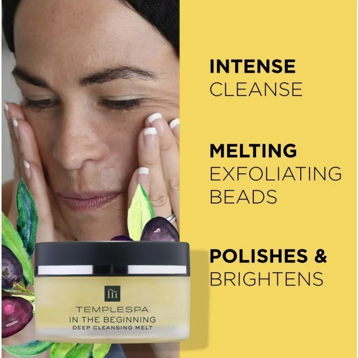 IN THE BEGINNING is one of those ‘desert island products’ you can’t live without! A concentrated balm that gives that ‘just had a facial’ feeling every time. Its unique buttery-crystalline texture melts as you massage, delivering rich vitamin E straight to your skin. Formulated with Mediterranean ingredients of olive, calendula, basil, clary and lavender to ensure a nutritious, intense cleanse, leaving skin feeling dewy and glowing with health and vitality. The result… deeply cleansed & brightened skin!