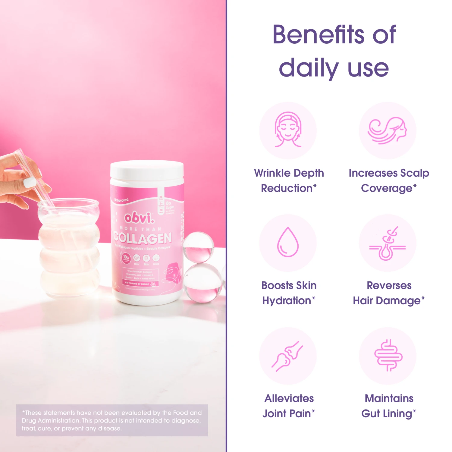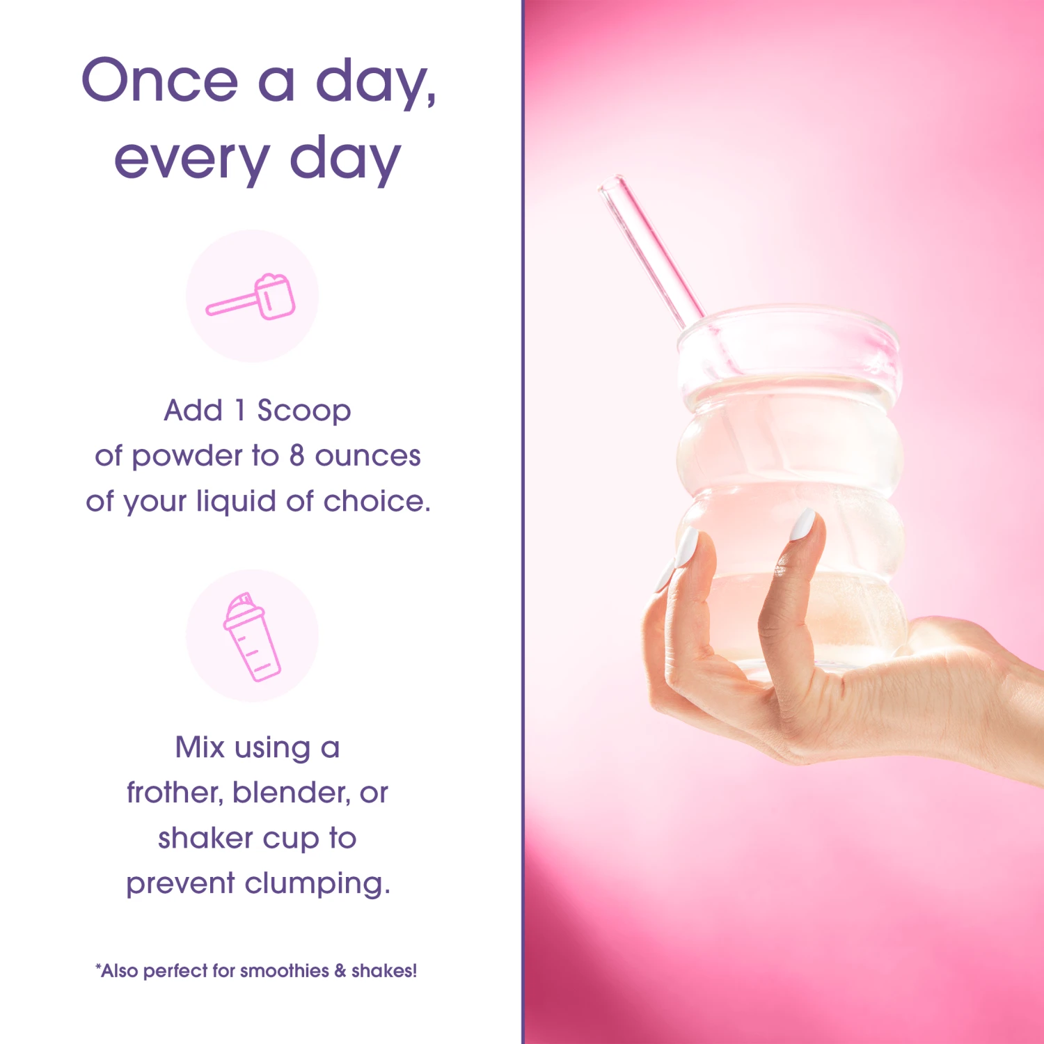 Nourish your body with our all natural formula enriched with Multi-Collagen, Keratin, Hyaluronic Acid, Vitamin C, and Biotin – working together daily to prevent and reverse noticeable signs of aging in your hair, skin, nails, joints, and gut microbiome.