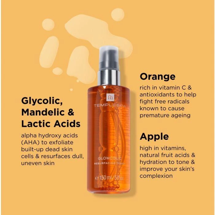 GLOWCOLIC is an exfoliating toner with natural glycolic acid that smooths, nourishes and balances your skin’s complexion. Mediterranean extracts of grape, apple, lemon and orange, rich in natural acids and vitamin c, combined with glycolic, mandelic and lactic acids to provide a refreshing formulation that gently lifts away dead skin cells and impurities to renew and nourish, evening out the skin’s surface for a brighter, healthier-looking complexion that sings with radiance.