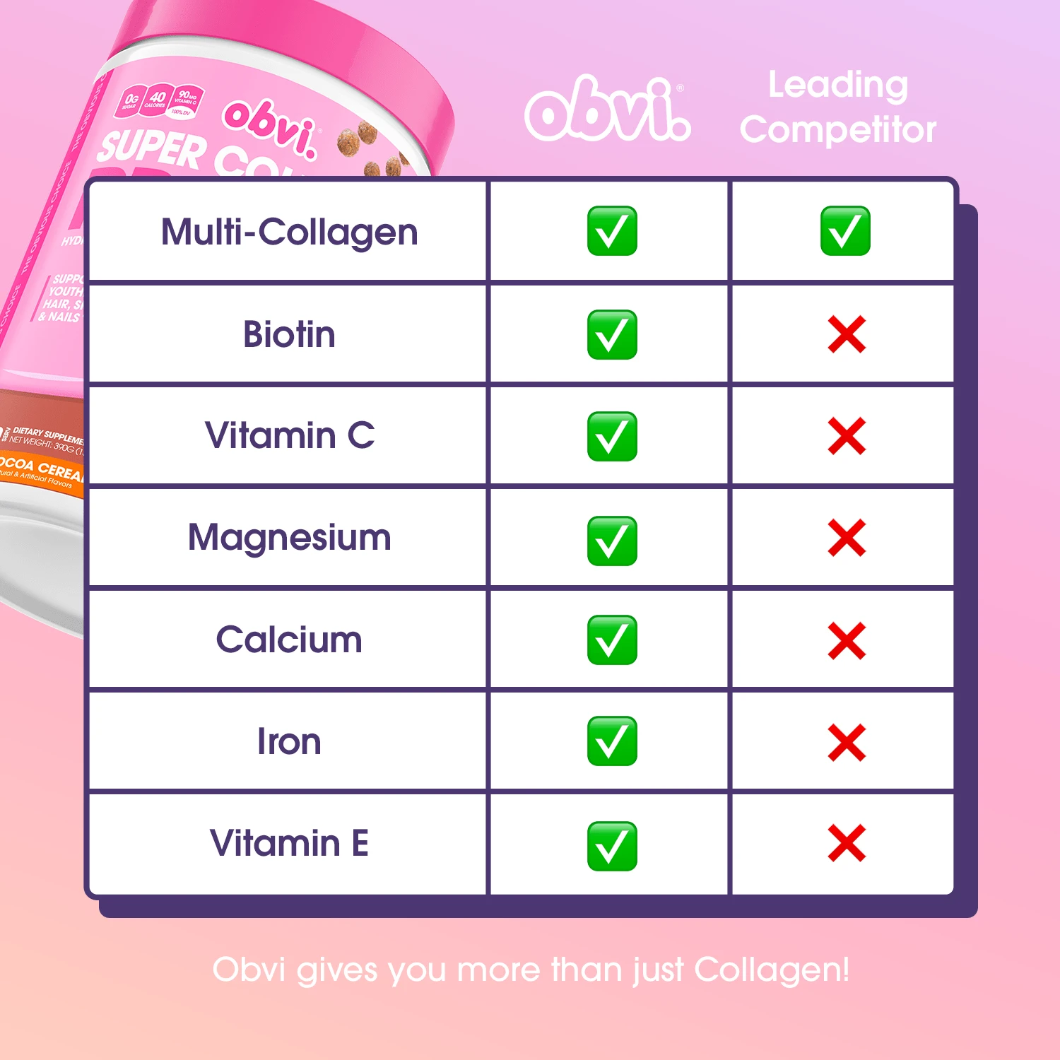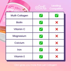 Obvi’s Super Collagen Protein is the most advanced Collagen in the market because It actually increases the absorption rate of collagen within the body.